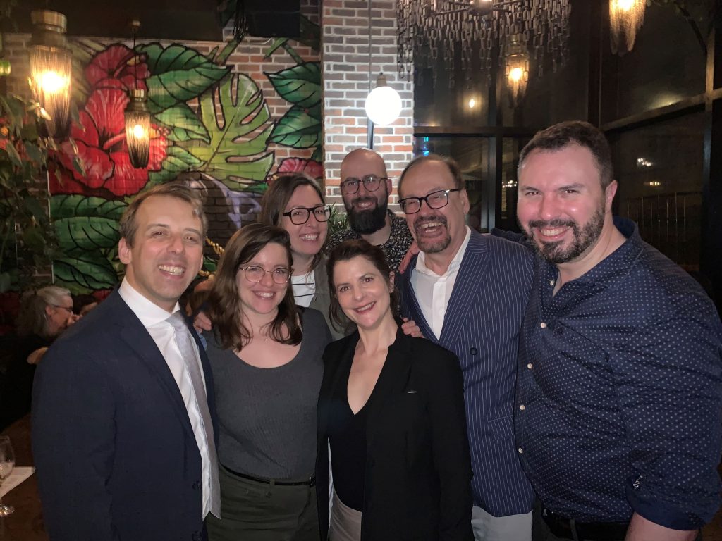 Le Gala Pythagore de l’UQTR (Université du Québec à Trois-Rivières) 2021 : Robert J. Vallerand, lauréat dans la catégorie Sciences de la santé, entouré de sa femme et de collègues.